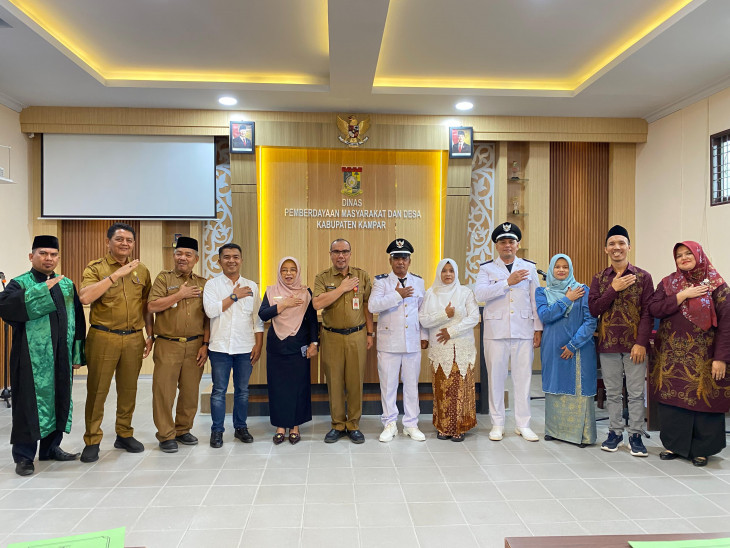 Bangkinang Kota, Pj. Bupati Kampar yang diwakili oleh Pj. Sekda Kampar Ramlah, SE, M,Si lakukan Pengambilan Sumpah Jabatan sekaligus Melantik Suharianto, S.Pd sebagai Pj. Kepala Desa Teluk Paman dan Edaran sebagai Pj. Kepala Desa Padang Sawah Kecamatan Kampar Kiri yang digelar di Aula Dinas PMD Kabupaten Kampar, Selasa (11/2/2025).