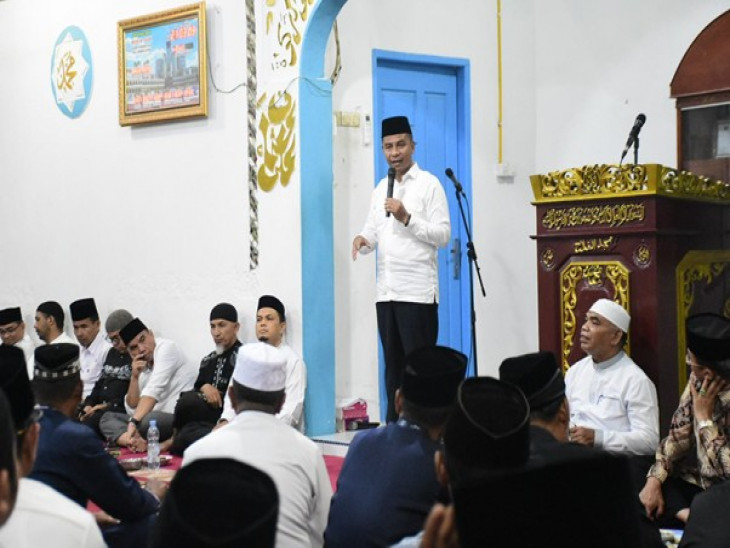 Muara Jalai - Tepat pada malam ke- 13 Ramadhan Bupati Kampar Ahmad Yuzar, S.Sos,M melakukan Safari Ramdhan 1446 H di Masjid Al-Falah Desa Muara Jalai, Kecamatan Kampar. Rabu (12/3/2025).