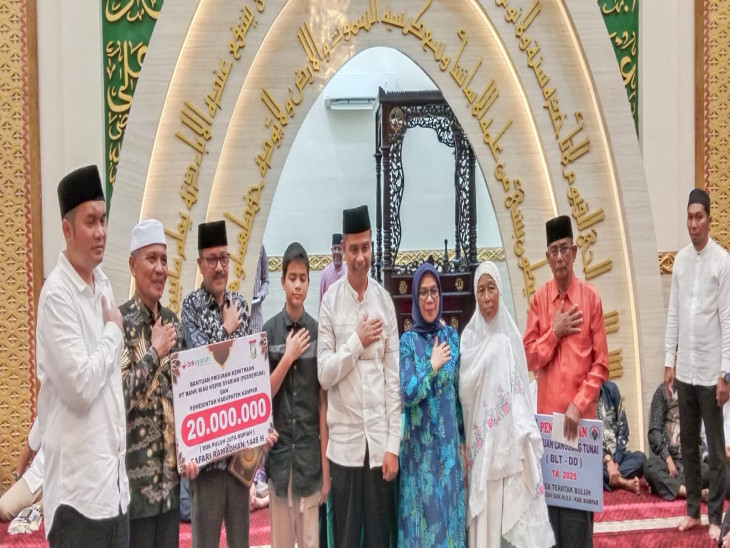 Dalam kegiatan tersebut, Bupati Kampar bersama Wakil Bupati Kampar menyerahkan sejumlah bantuan, di antaranya program kemitraan dari Bank Riau Kepri Syariah senilai Rp 20 juta untuk Masjid Raya Teratak Buluh, bantuan Al-Qur’an dari ASN dan THL Pemda Kampar, serta santunan dari Baznas Kampar bagi anak yatim dan kaum dhuafa.